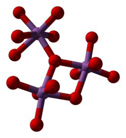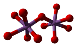Antimony pentoxide has the same structure as the B form of niobium pentoxide and can be derived from the rutile structure, with antimony coordinated by six oxygen atoms in a distorted octahedral arrangement. The SbO6 octahedra are corner- and edge-sharing.[2]