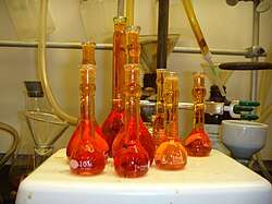 Aqua regia is also used in etching and in specific analytic procedures. It is also used in some laboratories to clean glassware of organic compounds and metal particles. This method is preferred among most over the more traditional chromic acid bath for cleaning NMR tubes, because no traces of paramagnetic chromium can remain to spoil spectra.[1] While chromic acid baths are discouraged because of the high toxicity of chromium and the potential for explosions, aqua regia is itself very corrosive and has been implicated in several explosions due to mishandling.[2]