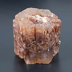 The crystal lattice of aragonite differs from that of calcite, resulting in a different crystal shape, an orthorhombic crystal system with acicular crystal.[5] Repeated twinning results in pseudo-hexagonal forms. Aragonite may be columnar or fibrous, occasionally in branching helictitic forms called flos-ferri ("flowers of iron") from their association with the ores at the Carinthian iron mines.[6]