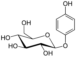 The compound is naturally occurring and can be extracted from several plant species. Traditionally extracted from the bearberry plant (Arctostaphylos uva-ursi), it also occurs in high levels in plants in the families of Ericaceae and Saxifragaceae.[7] Others include the pear (Pyrus spp.), and certain species of wheat. It is also found in very small quantities in Viburnum opulus, Bergenia crassifolia and Schisandra chinensis.[8][9]