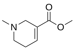 The drug acts as a non-selective partial agonist of muscarinic and nicotinic acetylcholine receptors.[1] The major metabolite of arecoline, arecaidine, is a GABA reuptake inhibitor.[1] The subjective effects of arecoline appear to be mediated by muscarinic acetylcholine receptors and not by nicotinic acetylcholine receptors based on animal studies.[1][4] However, its mechanism of action is still yet to be fully understood and other activities have also been described.[3][5] The stimulant and addictive effects of arecoline are thought to be due to increased dopaminergic neurotransmission in the mesolimbic pathway of the brain.[6][3][1] In terms of chemical structure, arecoline is closely related to nicotinic acid.[1]