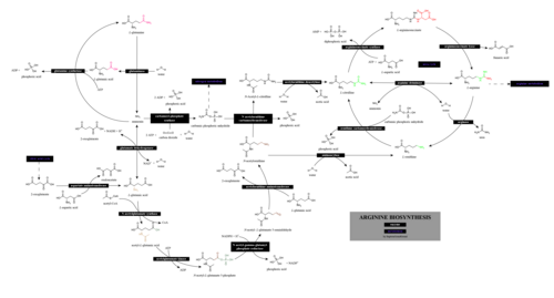 Arginine is synthesized from citrulline in the urea cycle by the sequential action of the cytosolic enzymes argininosuccinate synthetase and argininosuccinate lyase. This is an energetically costly process, because for each molecule of argininosuccinate that is synthesized, one molecule of adenosine triphosphate (ATP) is hydrolyzed to adenosine monophosphate (AMP), consuming two ATP equivalents.