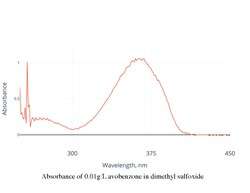 Avobenzone has a peak absorbance around 360 nm when dissolved. The peak may shift slightly depending on the solvent.