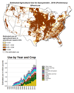 - ^ US Geological Survey (2021-10-12). "Estimated Agricultural Use for azoxystrobin, 2019". Retrieved 2021-12-26.