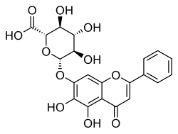 Baicalin, along with its aglycone baicalein, is a positive allosteric modulator of the benzodiazepine site and/or a non-benzodiazepine site of the GABAA receptor.[3][4][5] In mice, baicalin produces anxiolytic effects without sedative or myorelaxant effects.[6][7] It is thought that baicalin, along with other flavonoids, may underlie the anxiolytic effects of S. baicalensis and S. lateriflora.[8][9]