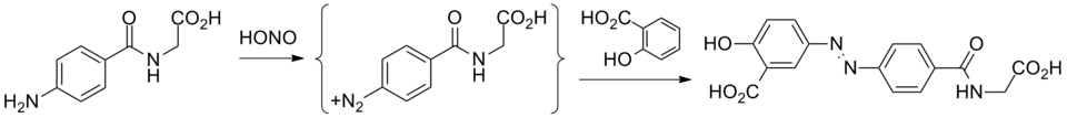 - Starting material is 4-aminohippuric acid, obtained by coupling para-aminobenzoic acid and glycine.