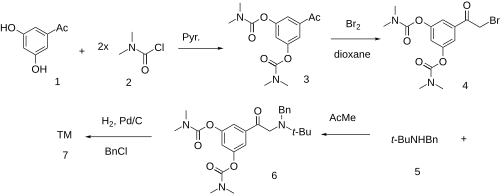 - ^ Asami, K., Machida, T., Jung, S., Hanaya, K., Shoji, M., Sugai, T. (December 2013). "Synthesis of (R)-bambuterol based on asymmetric reduction of 1-[3,5-bis(dimethylcarbamoyloxy)phenyl]-2-chloroethanone with incubated whole cells of Williopsis californica JCM 3600". Journal of Molecular Catalysis B: Enzymatic. 97: 106–109. doi:10.1016/j.molcatb.2013.08.003.