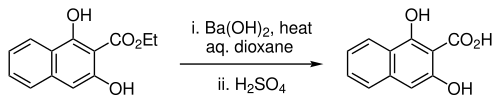 - ^ Meyer, K.; Bloch, H. S. (1945). "Naphthoresorcinol". Org. Synth. 25: 73; Coll. Vol. 3: 637.