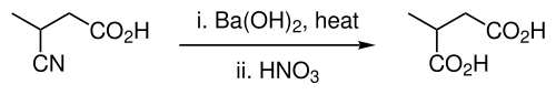 Barium hydroxide is occasionally used in organic synthesis as a strong base, for example for the hydrolysis of esters[8] and nitriles,[9][10][11] and as a base in aldol condensations.