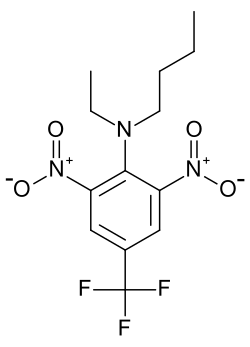 Benfluralin (or Benefin) is a herbicide of the dinitroaniline class. The mechanism of action of benfluralin involves pre-emergent inhibition of mitosis, root and shoot development,[4] same as trifluralin, from which benfluralin was developed in 1963.[5][6]