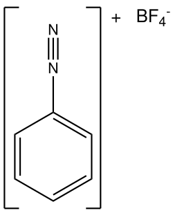 Benzenediazonium tetrafluoroborate is an organic compound with the formula [C6H5N2]BF4. It is a salt of a diazonium cation and tetrafluoroborate. It exists as a colourless solid that is soluble in polar solvents. It is the parent member of the aryldiazonium compounds,[2] which are widely used in organic chemistry.