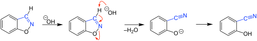 First reported by Daniel S. Kemp,[5][6][7] the relatively weak N-O bond can be cleaved by a strong base to yield a 2-hydroxybenzonitrile species.