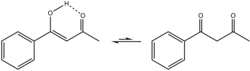 Benzoylacetone is the organic compound with the nominal formula C6H5C(O)CH2C(O)CH3. As a 1,3-dicarbonyl, it is a precursor to many heterocycles, such as pyrazoles.[1] It exists predominantly as the enol tautomer C6H5C(OH)=CHC(O)CH3.[2] Its conjugate base (pKa=8.7) forms stable complexes with transition metals and lanthanides.[3]