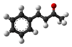 Benzylideneacetone is the organic compound described by the formula C6H5CH=CHC(O)CH3. Although both cis- and trans-isomers are possible for the α,β-unsaturated ketone, only the trans isomer is observed. Its original preparation demonstrated the scope of condensation reactions to construct new, complex organic compounds.[1] Benzylideneacetone is used as a flavouring ingredient in food and perfumes.[2]