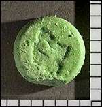 An impure 'ecstasy' tablet – seized by law enforcement in the United States – containing BZP, methamphetamine, and caffeine
