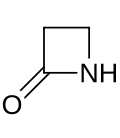 A β-lactam (beta-lactam) ring is a four-membered lactam.[1] A lactam is a cyclic amide, and beta-lactams are named so because the nitrogen atom is attached to the β-carbon atom relative to the carbonyl. The simplest β-lactam possible is 2-azetidinone. β-lactams are significant structural units of medicines as manifested in many β-lactam antibiotics.[2][3] Up to 1970, most β-lactam research was concerned with the penicillin and cephalosporin groups, but since then, a wide variety of structures have been described.[4]