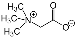 A betaine (/ˈbiːtə.iːn, bɪˈteɪ-, -ɪn/) is any neutral chemical compound with a positively charged cationic functional group that bears no hydrogen atom, such as a quaternary ammonium or phosphonium cation (generally: onium ions), and with a negatively charged functional group, such as a carboxylate group that may not be adjacent to the cationic site.[1] Historically, the term was reserved for trimethylglycine (TMG), which is involved in methylation reactions and detoxification of homocysteine.[1] This is a modified amino acid consisting of glycine with three methyl groups serving as methyl donor for various metabolic pathways.[2]