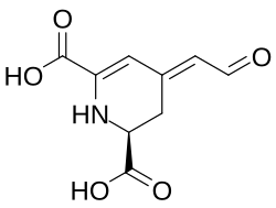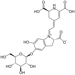 It is now known that betalains are aromatic indole derivatives synthesized from tyrosine. They are not related chemically to the anthocyanins and are not even flavonoids.[8] Each betalain is a glycoside, and consists of a sugar and a colored portion. Their synthesis is promoted by light.[3]