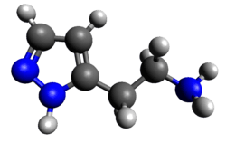 It has been used as a gastric stimulant to test for maximal production of gastric secretion activity.[1] The test can be used in diagnosis of diseases such as Zollinger-Ellison syndrome where there is excess acid production, in this case driven by over production of gastrin. The volume of acid secretion is measured following administration of betazole, diagnosis being secretion greater than 60% of the maximal acid secretion following betazole stimulation. This procedure can lead to complications and should be avoided in subjects with coronary artery disease.[2] It is also used in diagnosis of gastritis in association with a test for secretin activity.