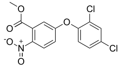 Bifenox is the ISO common name[3] for an organic compound used as an herbicide. It acts by inhibiting the enzyme protoporphyrinogen oxidase which is necessary for chlorophyll synthesis.[4][5]