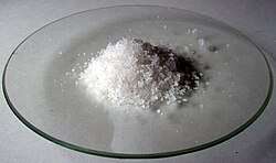 Bismuth(III) nitrate is a salt composed of bismuth in its cationic +3 oxidation state and nitrate anions. The most common solid form is the pentahydrate.[3] It is used in the synthesis of other bismuth compounds.[4] It is available commercially. It is the only nitrate salt formed by a group 15 element, indicative of bismuth's metallic nature.[5]
