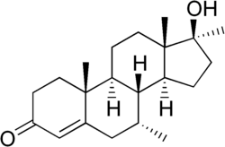 Bolasterone (INN Tooltip International Nonproprietary Name , USAN Tooltip United States Adopted Name ) (brand names Myagen , Methosarb ; former developmental code name U-19763 ), also known as 7α,17α-dimethyltestosterone , is a 17α-alkylated androgen/anabolic steroid (AAS) which is used in veterinary medicine.[ 2] [ 3] It has close structural similarity to testosterone , and like methyltestosterone has a methyl group at C17α in order to increase oral bioavailability.[ 2] In addition, it is also 7α-methylated, similar to its 7β-methylated isomer calusterone .[ 2] The medication has a low to moderate ratio of anabolic to androgenic activity, similar to that of fluoxymesterone .[ 4]