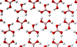 - ^ Masanori Tachikawa (2004): "A density functional study on hydrated clusters of orthoboric acid, B(OH)3(H2O)n (n=1–5)". Journal of Molecular Structure: THEOCHEM, volume 710, issues 1–3, pages 139-150. doi:10.1016/j.theochem.2004.09.008
