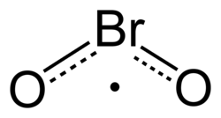 Bromine dioxide is the chemical compound composed of bromine and oxygen with the formula BrO2. It forms unstable yellow[2] to yellow-orange[1] crystals. It was first isolated by R. Schwarz and M. Schmeißer in 1937 and is hypothesized to be important in the atmospheric reaction of bromine with ozone.[3] It is similar to chlorine dioxide, the dioxide of its halogen neighbor one period higher on the periodic table.