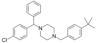 • Clc1ccc(cc1)C(c2ccccc2)N3CCN(CC3)Cc4ccc(cc4)C(C)(C)C