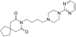 - ^ a b Allen LE, Ferguson HC, Kissel JW (May 1972). "Psychosedative agents. 2. 8-(4-Substituted 1-piperazinylalkyl)-8-azaspiro(4.5)decane-7,9-diones". Journal of Medicinal Chemistry. 15 (5): 477–479. doi:10.1021/jm00275a009. PMID 5035267.