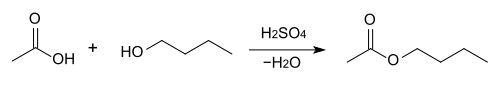 Butyl acetate is commonly manufactured by the Fischer esterification of n-butanol and acetic acid with the presence of sulfuric acid:[7]