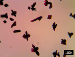 It solubility in water is low: 0.97 g/L at 1 °C,[2] 2.3 g/L at 19 °C, and 12.5 g/L at 59 °C.[3] Its crystal structure is orthorhombic,[4] the same as rubidium permanganate, ammonium permanganate and potassium permanganate.