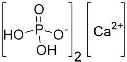 Monocalcium phosphate is an inorganic compound with the chemical formula Ca(H2PO4)2 ("AMCP" or "CMP-A" for anhydrous monocalcium phosphate). It is commonly found as the monohydrate ("MCP" or "MCP-M"), Ca(H2PO4)2·H2O. Both salts are colourless solids. They are used mainly as superphosphate fertilizers and are also popular leavening agents.[1]