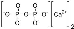 Calcium pyrophosphate refers to any member of a series of inorganic compound with the formula Ca2P2O7(H2O)n. They are white solids that are insoluble in water. They contain the pyrophosphate anion, although sometimes they are referred to as phosphates. The inventory includes an anhydrous form, a dihydrate (Ca2P2O7·2H2O), and a tetrahydrate (Ca2P2O7·4H2O). Deposition of dihydrate crystals in cartilage is responsible for the severe joint pain in cases of calcium pyrophosphate deposition disease (pseudo gout) whose symptoms are similar to those of gout.[1] Ca2P2O7 is commonly used as a mild abrasive agent in toothpastes because of its insolubility and nonreactivity toward fluoride.[2]