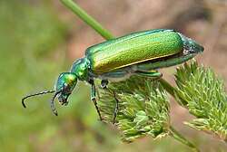 - ^ Including broadly in genus Epicauta, genus Berberomeloe, and in species Lytta vesicatoria ("Spanish fly"). False blister beetles, cardinal beetles, and soldier beetles also produce cantharidin.