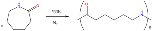 Almost all caprolactam produced goes into the manufacture of nylon 6. The conversion entails a ring-opening polymerization:
