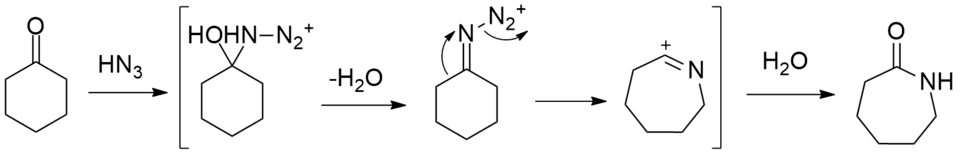 Other paths to caprolactam include the depolymerization of waste nylon 6, and the reaction of caprolactone with ammonia.[2] At bench scale, the reaction between cyclohexanone with hydrazoic acid to give caprolactam in the Schmidt reaction has been reported.[3]
