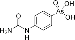 Carbarsone is an organoarsenic compound used as an antiprotozoal drug for treatment of amebiasis and other infections.[1][2][3] It was available for amebiasis in the United States as late as 1991. Thereafter, it remained available as a turkey feed additive for increasing weight gain and controlling histomoniasis (blackhead disease).[4][5]