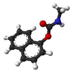 Carbaryl (1-naphthyl methylcarbamate) is an organic compound with the formula C10H7OC(O)NHCH3. Classified as a carbamate, it is used chiefly as an insecticide. It is a white solid was under the brand name Sevin, which was a trademark of the Bayer Company.[3][4]
