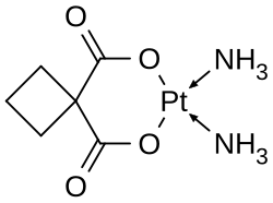 - ^ Natarajan G, Malathi R, Holler E (November 1999). "Increased DNA-binding activity of cis-1,1-cyclobutanedicarboxylatodiammineplatinum(II) (carboplatin) in the presence of nucleophiles and human breast cancer MCF-7 cell cytoplasmic extracts: activation theory revisited". Biochemical Pharmacology. 58 (10): 1625–1629. doi:10.1016/S0006-2952(99)00250-6. PMID 10535754.