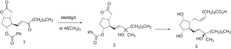- ^ Yankee EW, Axen U, Bundy GL (September 1974). "Total synthesis of 15-methylprostaglandins". Journal of the American Chemical Society. 96 (18): 5865–76. Bibcode:1974JAChS..96.5865Y. doi:10.1021/ja00825a027. PMID 4416671.
