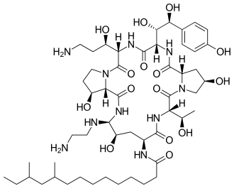 | Other names | (4R,5S)-5-[(2-Aminoethyl)amino]-N2-(10,12-dimethyltetradecanoyl)- 4-hydroxy-L-ornithyl-L-threonyl-trans-4-hydroxy-L-prolyl-(S)-4-hydroxy-4-(p-hydroxyphenyl)-L-threonyl-threo-3-hydroxy-L-ornithyl-trans-3-hydroxy-L-proline cyclic (6→1)-peptide [1]: 185 1-[(4R,5S)-5-[(2-Aminoethyl)amino]-N2-(10,12-dimethyl-1-oxotetradecyl)-4-hydroxy-L-ornithine]-5-[(3R)-3-hydroxy-L-ornithine] pneumocandin B0[2] |