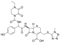 Cefoperazone is a third-generation cephalosporin antibiotic, marketed by Pfizer under the name Cefobid. It is one of few cephalosporin antibiotics effective in treating Pseudomonas bacterial infections which are otherwise resistant to these antibiotics.
