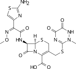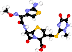 - ^ Klein NC, Cunha BA (July 1995). "Third-generation cephalosporins". The Medical Clinics of North America. 79 (4): 705–719. doi:10.1016/s0025-7125(16)30034-7. PMID 7791418.