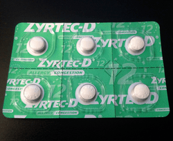 Cetirizine is available as a combination medication with pseudoephedrine, a decongestant.[52] The combination is often marketed using the same brand name as the cetirizine with a "-D" suffix (for example, Zyrtec-D).[53][54]