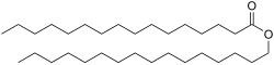 Hexadecyl hexadecanoate, also known as cetyl palmitate, is the ester derived from hexadecanoic acid and 1-hexadecanol. This white waxy solid is the primary constituent of spermaceti, the once highly prized wax found in the skull of sperm whales.[2] Cetyl palmitate is a component of some solid lipid nanoparticles.