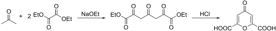 Chelidonic acid can be prepared in two steps from diethyl oxalate and acetone:[1][2]