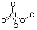 Chlorine perchlorate is a chemical compound with the formula Cl2O4. This chlorine oxide is an asymmetric oxide, with one chlorine atom in +1 oxidation state and the other +7, with proper formula Cl−O−ClO3. It is produced by the photodimerization of chlorine dioxide (ClO2) at room temperature by 436 nm ultraviolet light:[3][4][5]