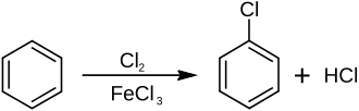 It was first described in 1851. Chlorobenzene is manufactured by chlorination of benzene in the presence of a catalytic amount of Lewis acid such as ferric chloride, sulfur dichloride, and aluminium chloride:[6]