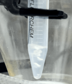 Liquefied chlorodifluoromethane boiling when exposed to ambient temperature and pressure.